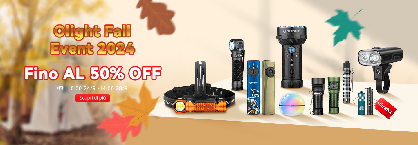 Chiamata a tutti gli O-Fan! È tempo di illuminare il tuo mondo con la nostra elettrizzante stravaganza dell'O-Fan Day! Non perderti il carnevale annuale dei fan di Olight con sconti fino al 40% su una gamma di nuovi prodotti. Che tu abbia bisogno di attrezzatura per escursioni all'aperto, backup per la casa o uso quotidiano, scopri i tuoi preferiti qui! Esplora la nostra ultima gamma di prodotti, accedi per ottenere la sorpresa esclusiva, gira la ruota per i premi, ricevi la personalizzazione gratuita su articoli selezionati e sblocca vantaggi aggiuntivi. Controlla ora!