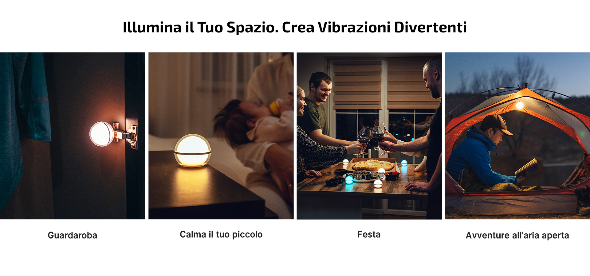 Diventa molto più di una semplice luce. Puoi passare senza sforzo da luce notturna, perfetta per serate accoglienti e rilassate; luce decorativa, ideale per creare atmosfera nel tuo spazio abitativo o in ambienti esterni; e luce di segnalazione, pratica per la sicurezza e la comunicazione durante avventure all'aperto o emergenze. La luce di valore definitivo che crea il tuo spettacolo di luci