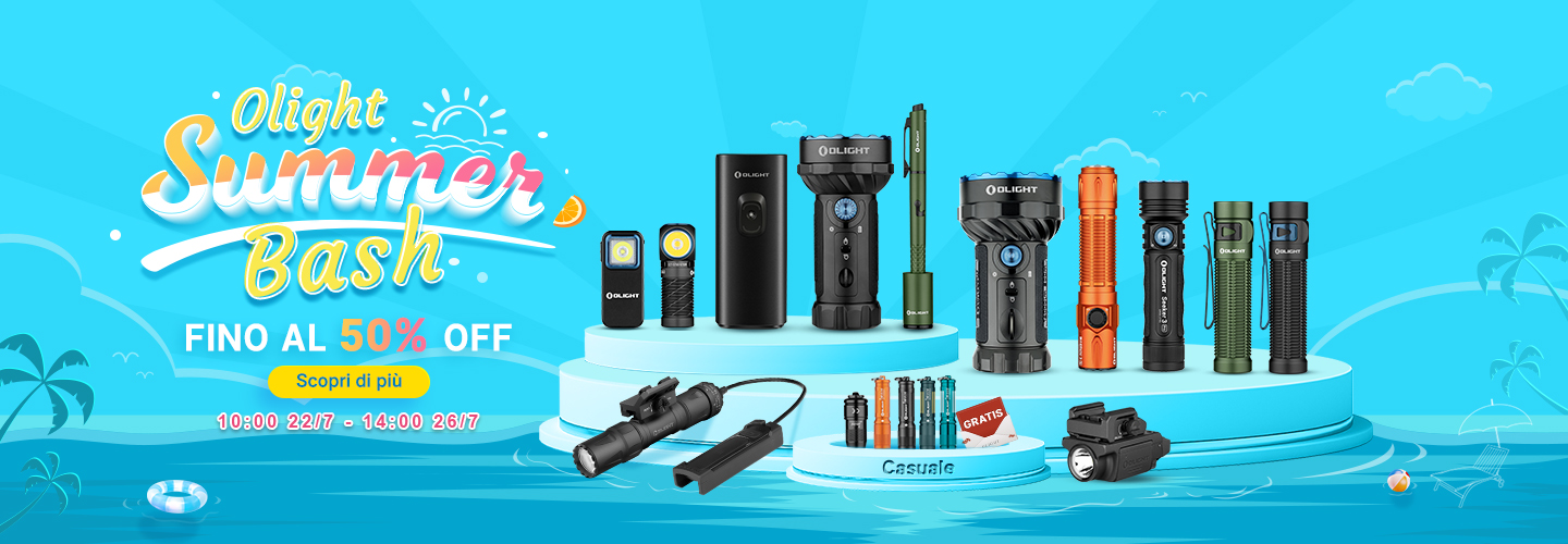 Il Summer Bash di Olight è un evento molto atteso e i saldi di quest'anno non hanno deluso. Non perderti il nostro Summer Bash e il lancio di nuovi prodotti! Nuovi prodotti e vantaggi verranno rilasciati alle 09:00 del 19/07/2024. Per sfruttare al meglio i saldi, ti consigliamo di sfogliare in anticipo i nuovi arrivi e le offerte per elaborare un piano di acquisto.