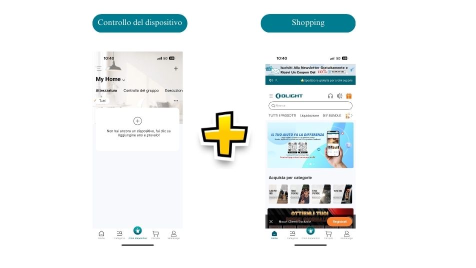 L'app non solo ti consente di controllare i tuoi dispositivi intelligenti, ma offre anche un'esperienza di acquisto completa, combinando controllo intelligente e acquisto in un'unica piattaforma intuitiva. Questa integrazione significa che puoi regolare i tuoi dispositivi intelligenti mentre navighi e acquisti accessori o nuovi prodotti, il tutto senza cambiare app.