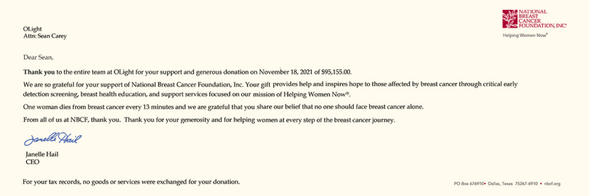 Un singolo sforzo potrebbe essere minimo, ma insieme possiamo essere una forza potente, illuminando più cuori. Attraverso questi eventi di raccolta fondi, siamo lieti di vedere che molti O-Fan si sono prodigati a modo loro. Alcuni di voi hanno acquistato le torce specifiche come regalo per amici o familiari che hanno sofferto di questa malattia; alcuni di voi hanno donato le torce a ospedali o organizzazioni locali; alcuni di voi hanno acquistato con il puro scopo di sostenere la ricerca sul cancro al seno. Indipendentemente da ciò che ti ha motivato a prendere parte alla campagna, sei una parte indispensabile per trasformare il mondo in un posto migliore. Insieme lavoriamo tutti verso un obiettivo: aumentare la consapevolezza, aumentare la speranza.