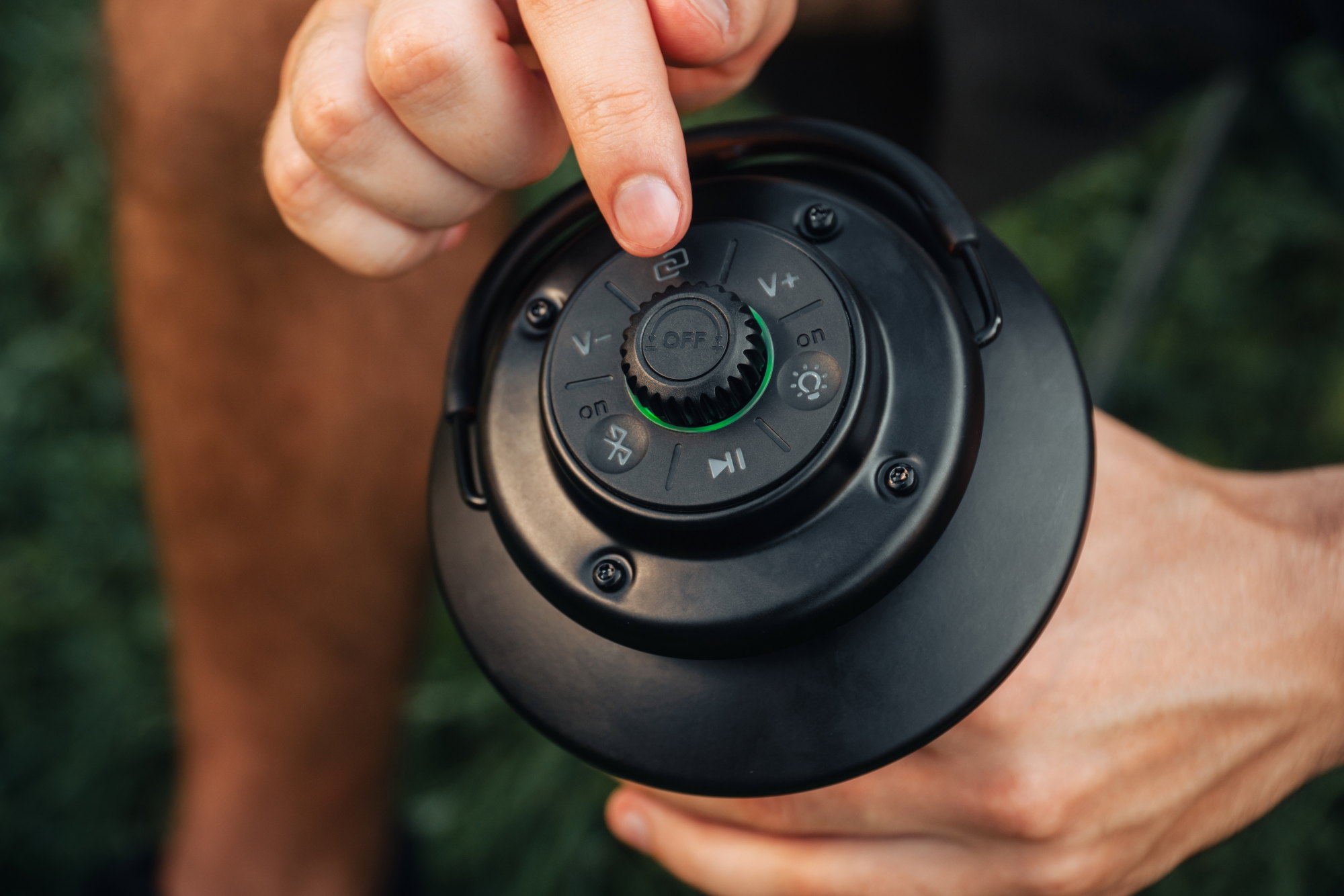 Con i pulsanti retroilluminati che si illuminano quando viene rilevata una vibrazione, trovare i controlli è un gioco da ragazzi, anche nella completa oscurità. L'interfaccia intuitiva di Olantern Music include una manopola di regolazione, controlli del volume, connettività Bluetooth, accensione/spegnimento della luce, pausa/riproduzione e pulsanti di interconnessione. Hai il controllo totale a portata di mano.