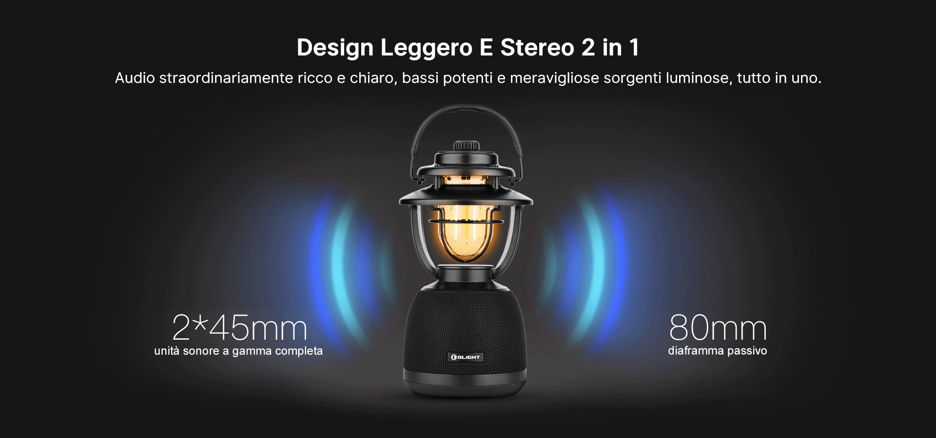 L'Olight Olantern Music è un dispositivo innovativo che combina senza soluzione di continuità l'illuminazione per esterni con un altoparlante Bluetooth di alta qualità. È progettata per rendere le tue esperienze all'aperto più divertenti, dalle riunioni intorno al fuoco del campeggio alle vivaci feste in giardino. Con il suo stile retrò, i controlli intuitivi e le funzionalità innovative come True Wireless Stereo e Broadcasting Mode, è il compagno definitivo per gli amanti della musica e gli appassionati delle attività all'aperto.