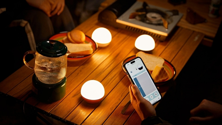 una luce a sfera impermeabile e a luce soffusa che brilla fino a 49 ore. Controlla facilmente colori e luminosità tramite touch o app. Perfetta per tende accoglienti, tavoli all'aperto e notti in campeggio.