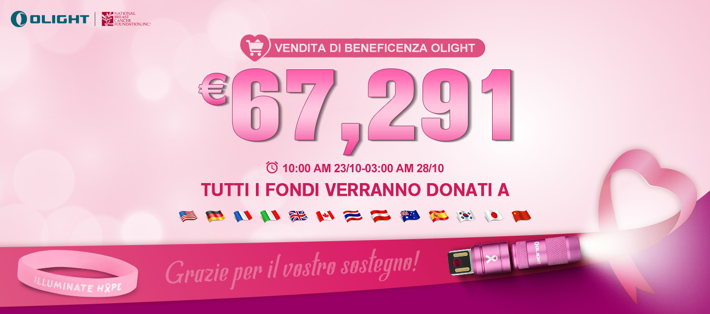 Olight ha lanciato la sua campagna di vendita di beneficenza contro il cancro al seno, i cui proventi, per un totale di 192.902 dollari, sono stati dedicati al sostegno dei programmi contro questa patologia.
