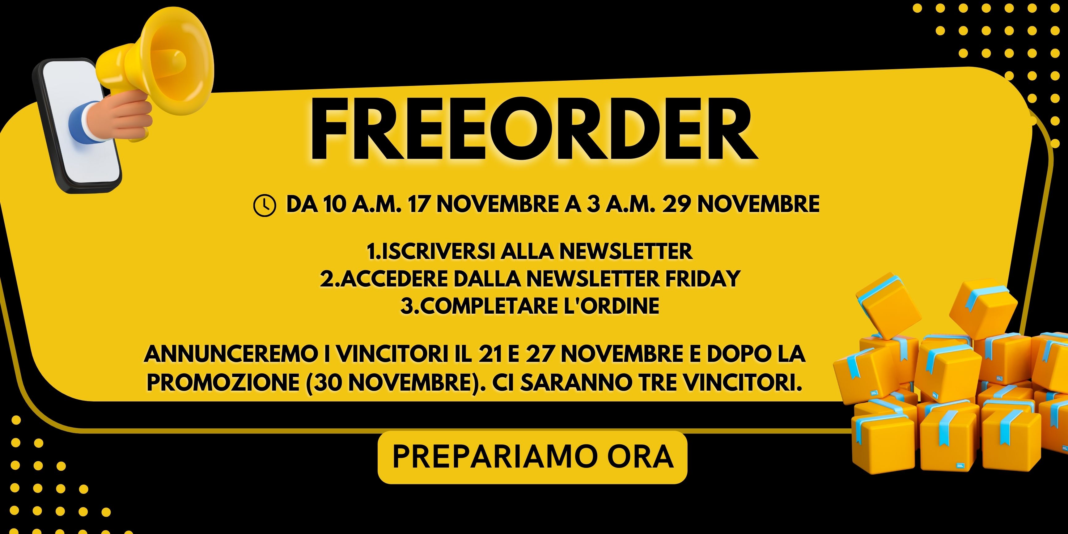 Vi preghiamo di prestare molta attenzione ai nostri post per conoscere i fortunati vincitori ogni giorno. I fortunati vincitori sono pregati di contattarmi privatamente entro 3 giorni dall'annuncio inviando la vostra e-mail con il numero d'ordine e noi aggiungeremo il premio al vostro ordine o vi invieremo un nuovo ordine dopo la conferma.
