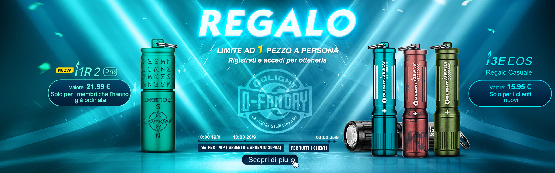 Come segno del nostro apprezzamento, prepariamo regali gratuiti per tutti coloro che accedono all' olightstore.it durante la celebrazione dell'O-Fan Day.